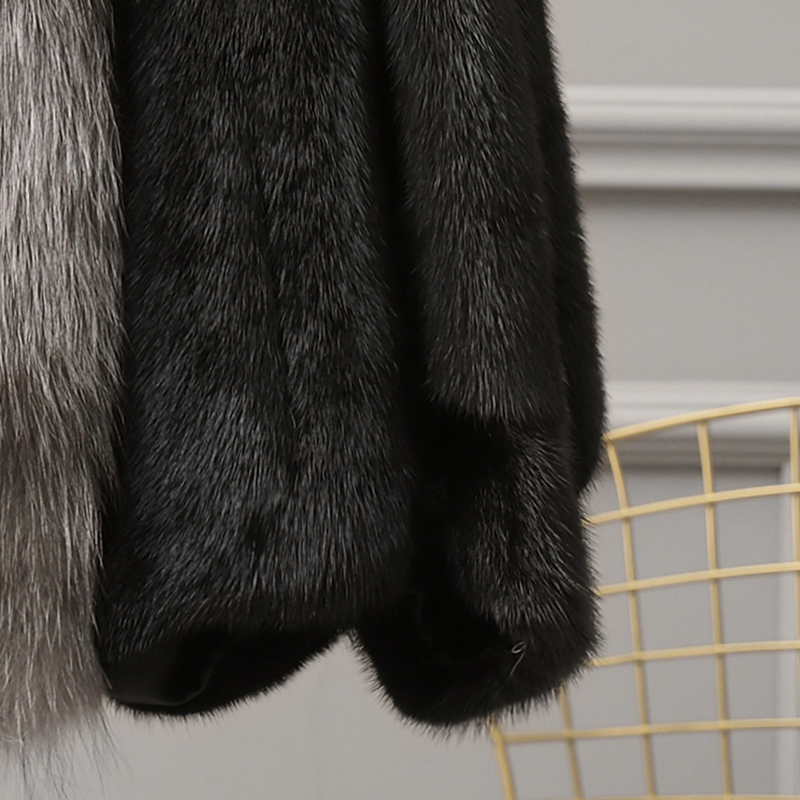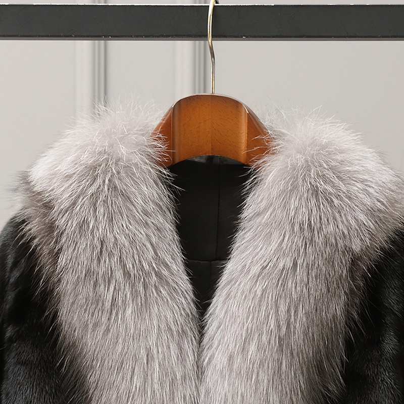 环保皮草大毛领皮草 仿白狐狸毛双间色立领款 ESEK皮草女款 2025新款