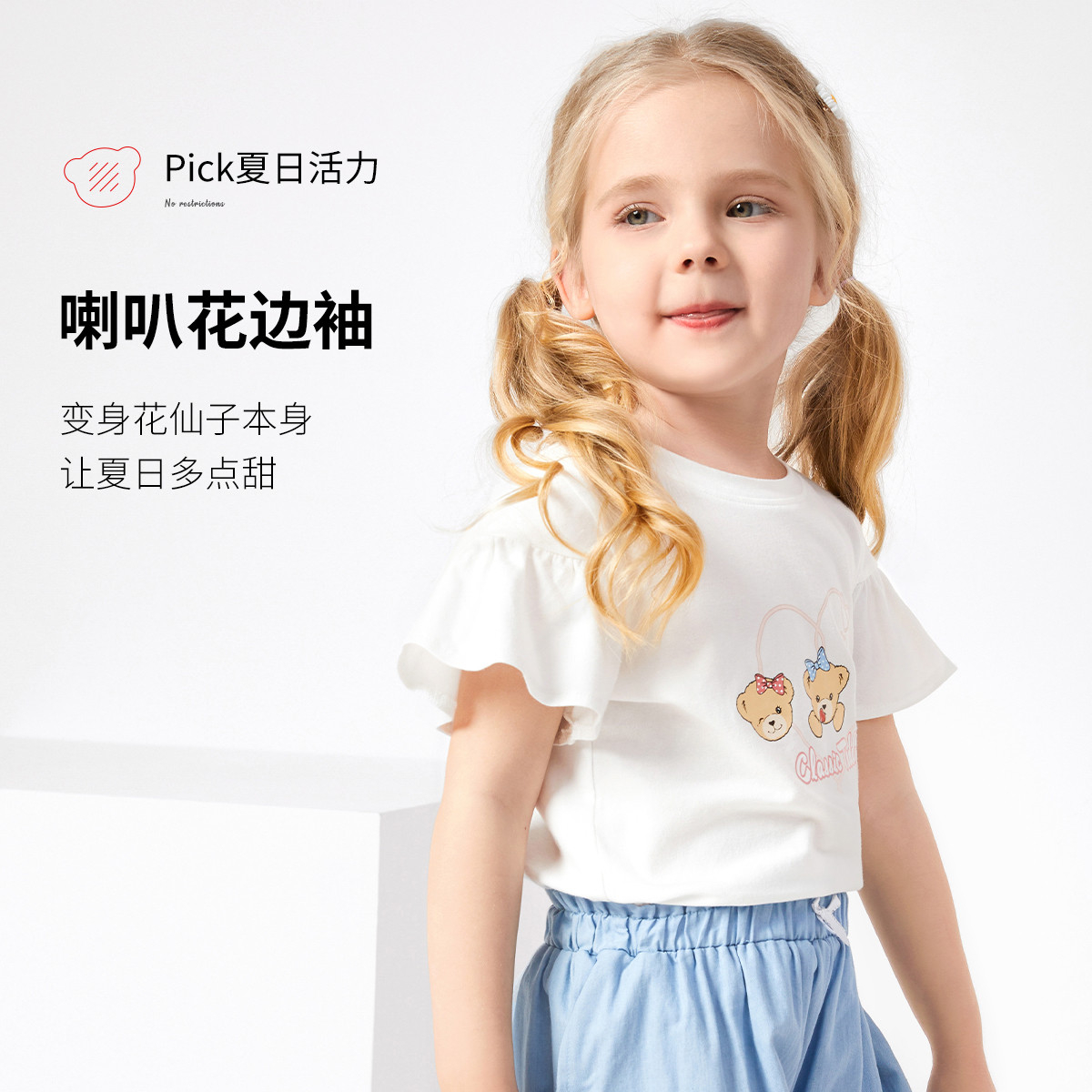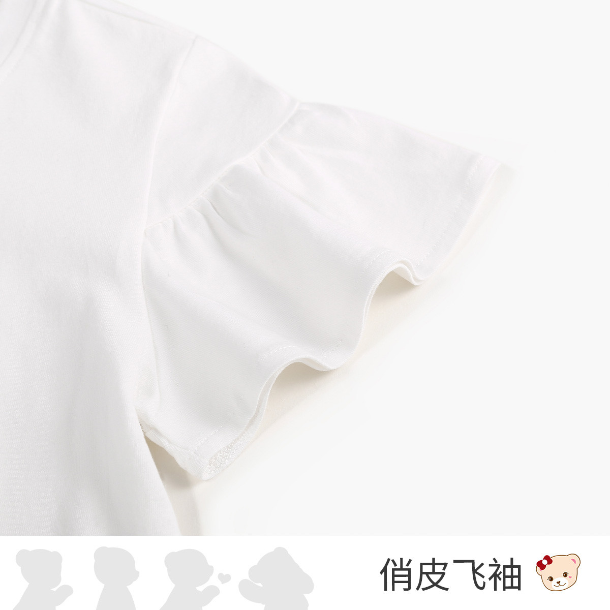 上衣可爱儿童打底衫 甜美花边袖 儿童圆领短袖 女童t袖 T恤夏季
