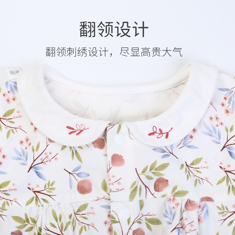 女婴儿纯棉连体衣夏季 空调衣服宝宝洋气公主哈衣爬服繁花夏日 长袖