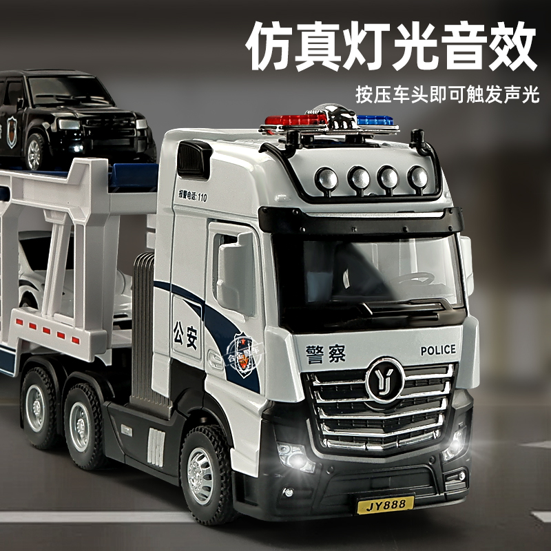 卡威大号合金运输车半挂儿童玩具平板拖车工程车货车汽车模型男孩