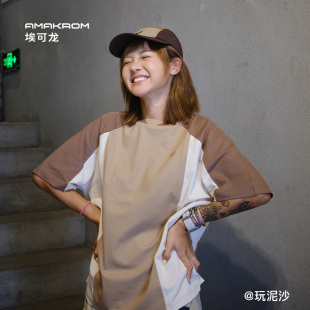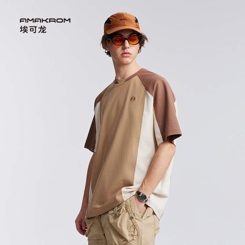 复古巴恩风短袖 AMAKROM美式 落肩户外运动宽松男T恤 博主同款