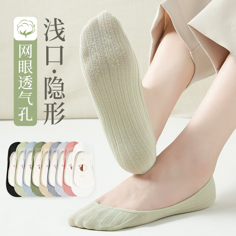 纯棉船袜子女春秋季 透气隐形袜无骨 不掉跟硅胶防滑短袜浅口夏薄款