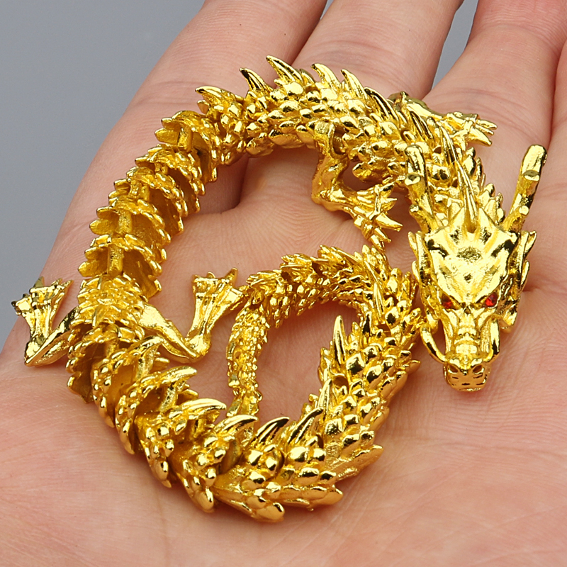 纯黄铜中国龙玩具生肖五爪金龙手把件办公室装 饰可活动桌面小摆件