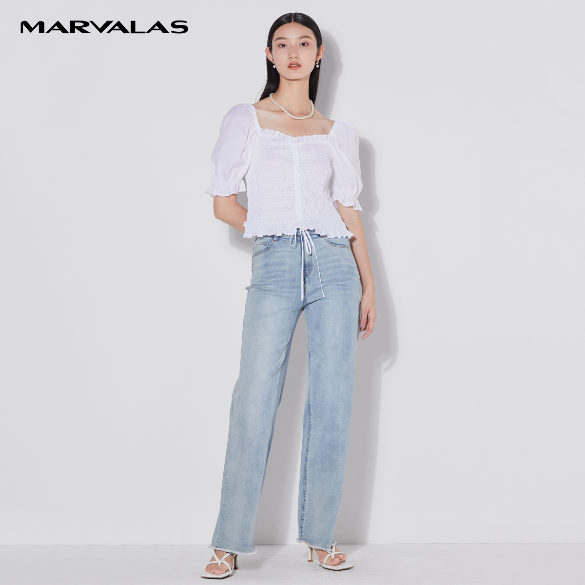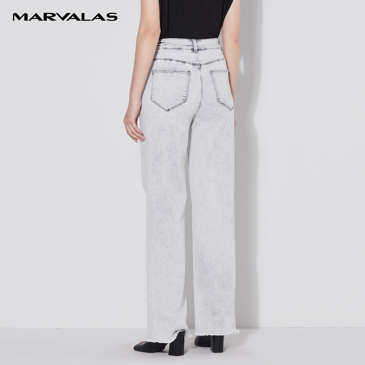女款 分割拼接显瘦直筒耐磨牛仔裤 VISION水洗做旧复古美式 CLIMAX
