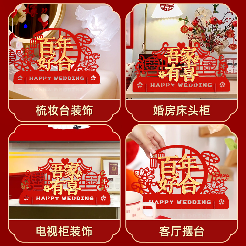 立体喜字摆件结婚专用婚房布置装 饰订婚卧室客厅婚礼桌面双喜摆台