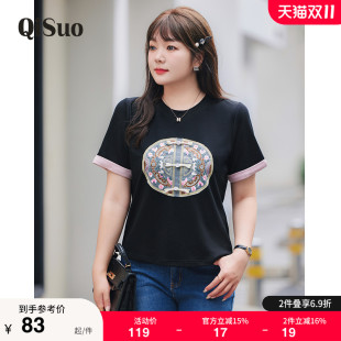 胖妹妹上衣女夏装 国风短袖 新款 圆领T恤衫 气质休闲新中式 显瘦大码