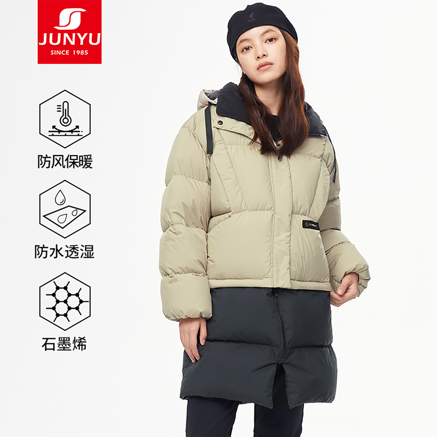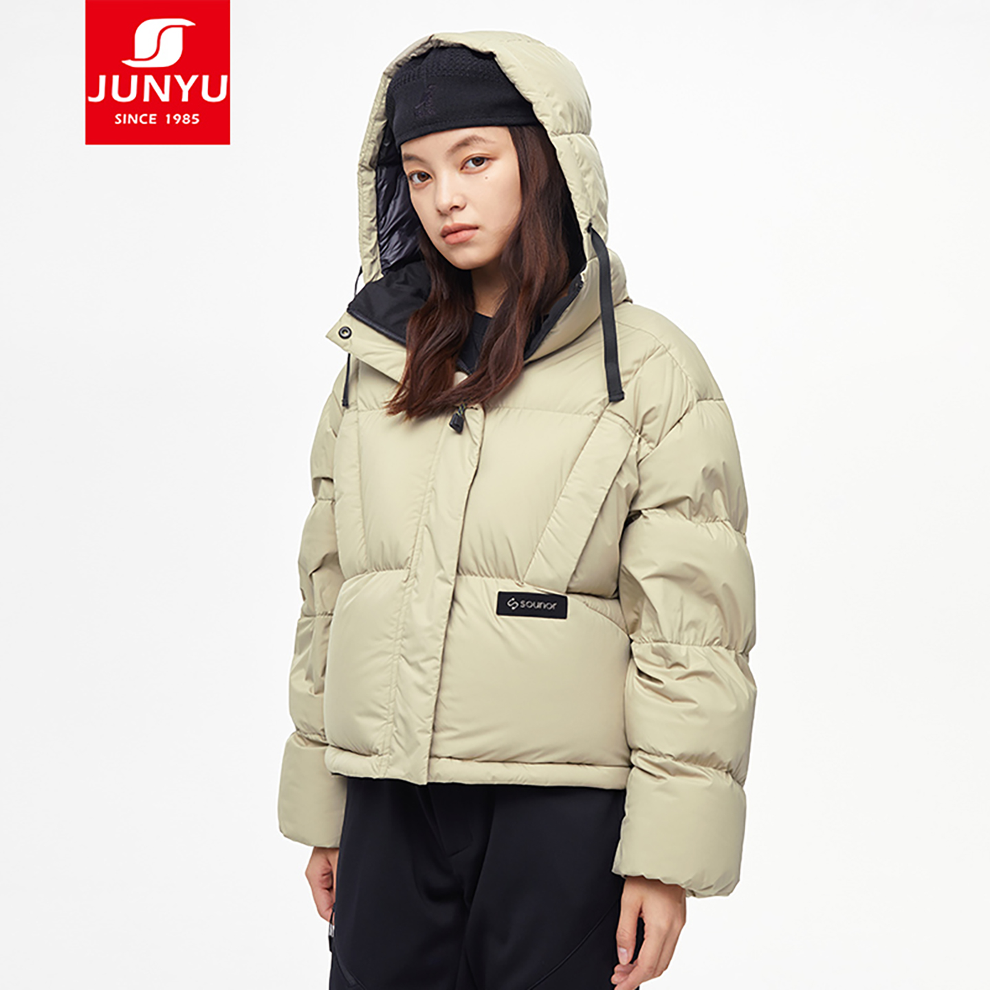 保暖连帽鸭绒轻薄外套 反季 佟丽娅明星同款 鸭鸭登山羽绒服女短冬季