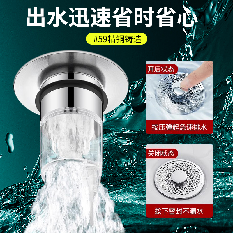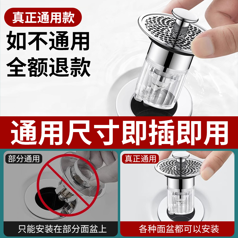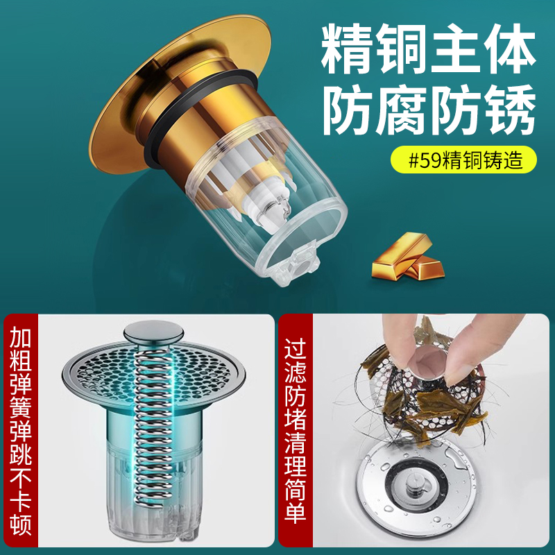 洗脸盆手池漏水塞子过滤网弹跳芯面盆下水器头发防堵臭按压式 配件