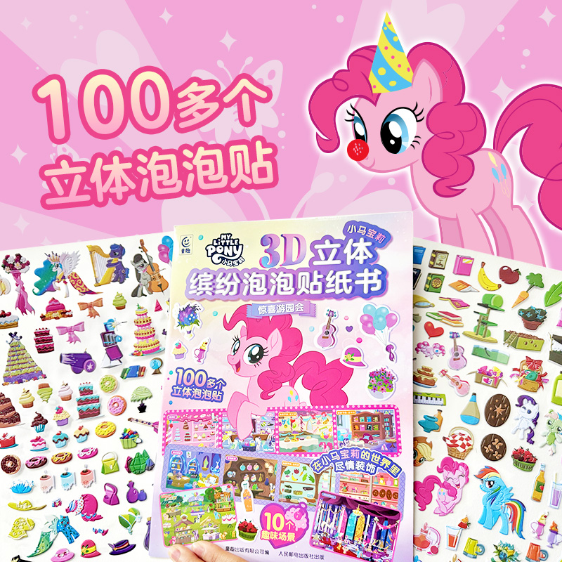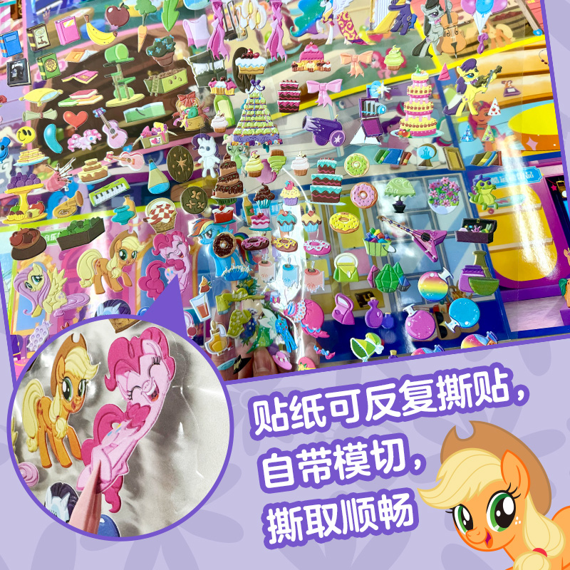 3d立体安静书可爱泡泡贴纸 手工专注力贴纸书可反复粘贴 小马宝莉3D立体缤纷泡泡贴纸书 3到6岁以上贴纸本女孩儿童益智玩具贴贴画