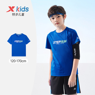 儿童速干运动上衣大童透气夏装 特步童装 t恤2025新款 短袖 男童秋季