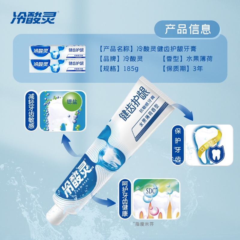 冷酸灵牙膏抗敏感护龈牙齿敏感去牙渍家庭装 185g牙龈薄荷专业修复