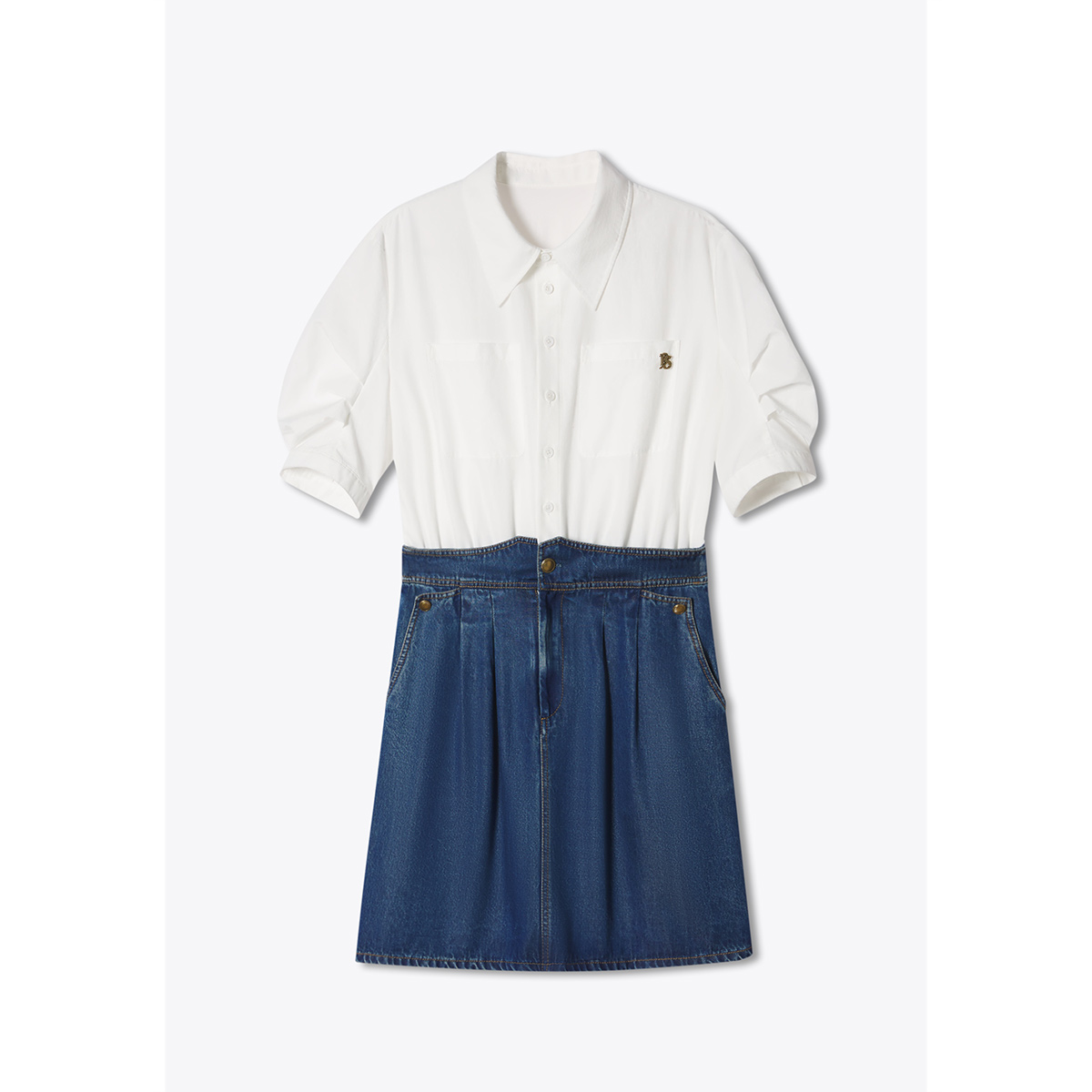 诗篇专选环保莱赛尔拼接假两件学院风牛仔连衣裙夏 天丝