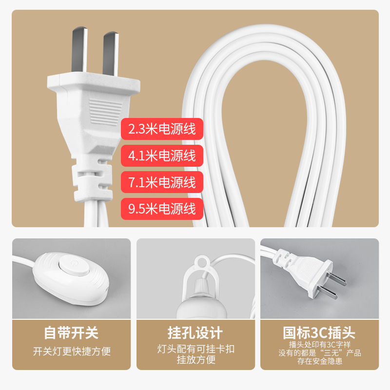 家用LED灯泡插电插座E27带线插头超亮照明节能灯头悬挂式 螺口灯座