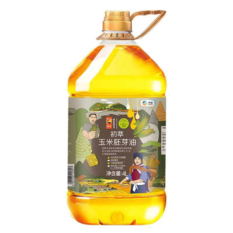初萃中粮食用油玉米胚芽油4L 1桶营养健康家用非转基因压榨