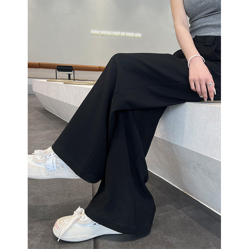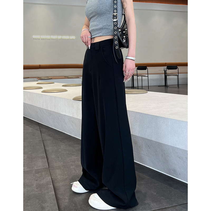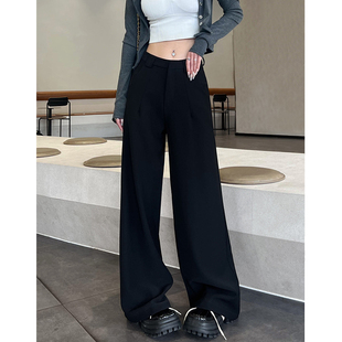 裤 垂感宽松阔腿长裤 女春秋夏2024新款 子薄款 设计感显瘦裤 黑色西装