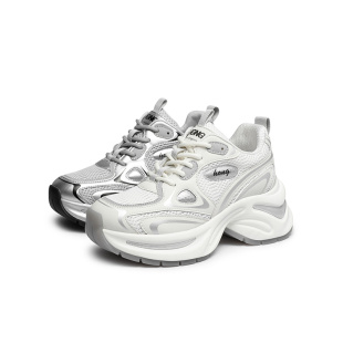 女春秋新款 网面鞋 女鞋 运动跑步鞋 厚底增高休闲鞋 红蜻蜓银色老爹鞋