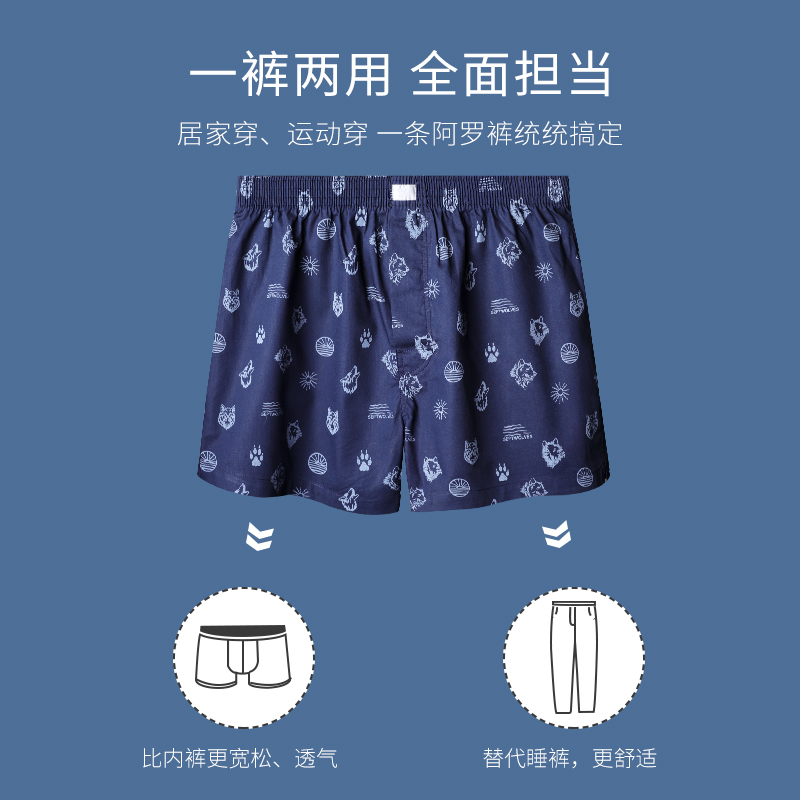 男款 阿罗裤 纯棉平角短裤 头宽松居家居加大裤 七匹狼男士 衩睡裤 内裤