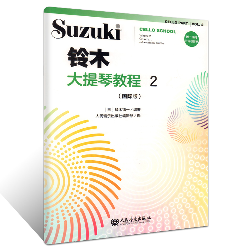 附二维码 国际版 示范与伴奏 成人儿童初学者入门大提琴教程专业级大提琴谱书大提琴考级书籍 社 正版 人民音乐出版 铃木大提琴教程2