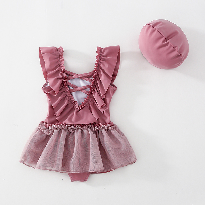 儿童泳衣女童连体公主裙花边游泳衣宝宝速干纱裙温泉小女孩泳装 韩