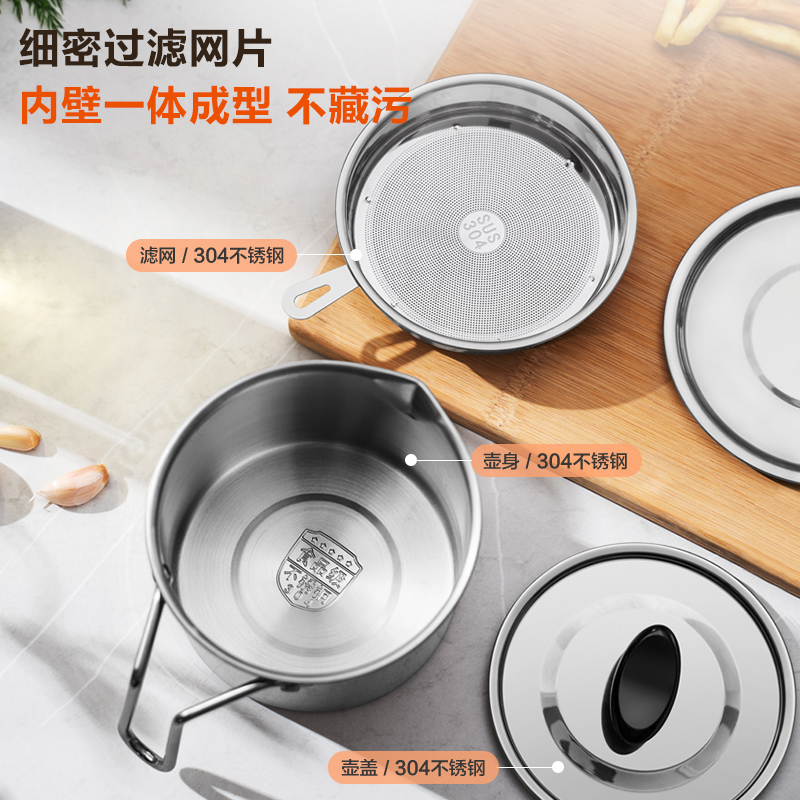 苏泊尔滤油壶不锈钢滤油神器过滤油渣壶漏油网油罐厨房家用沥油瓶