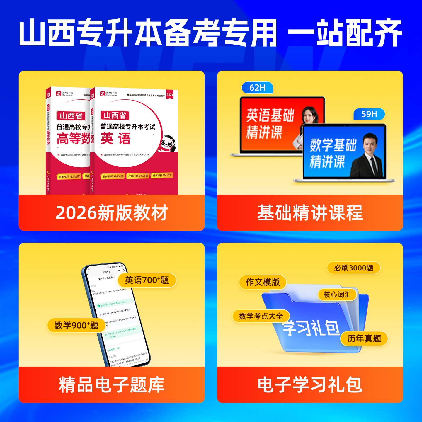 26年新版 2026专升本英语高等数学考试教材习题题库必刷题真题试卷模拟复习资料高频词汇统招网课文理科之了 山西省专用