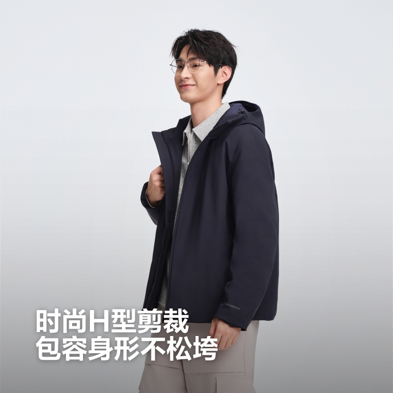 式 太平鸟男装 衬衫 宽松短款 保暖外套黑色防寒夹克 轻薄羽绒服冬季