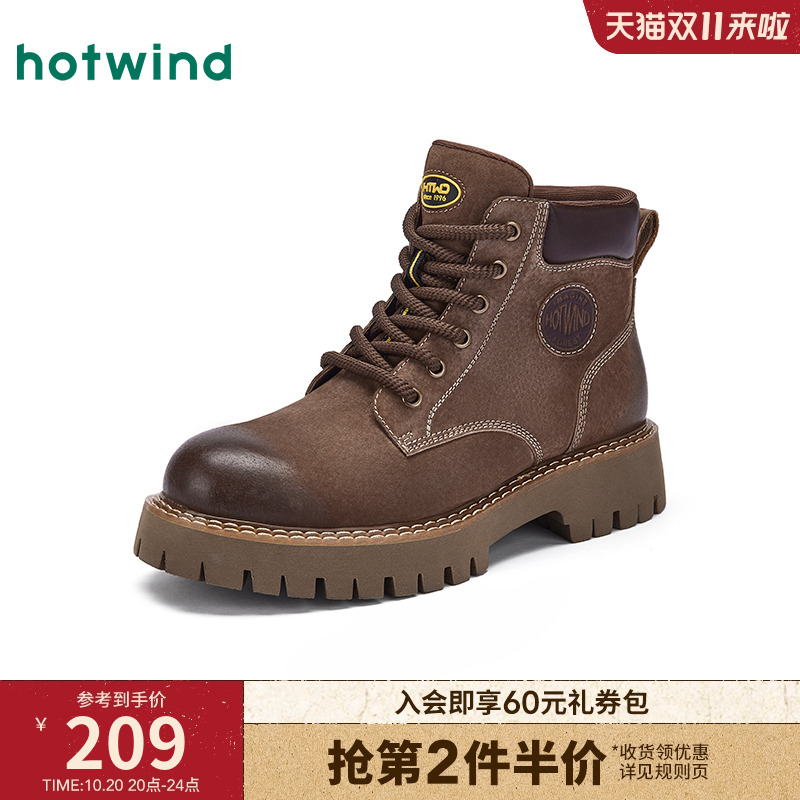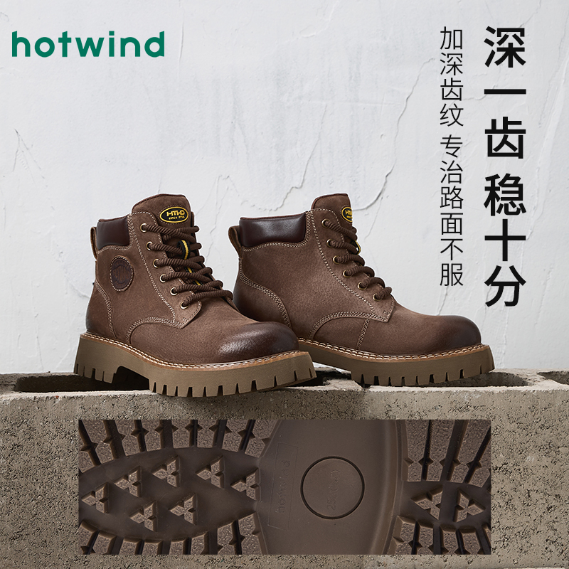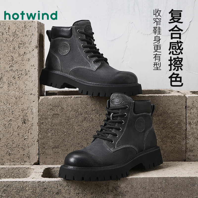 男靴 高帮秋冬潮流皮靴户外马丁靴英伦风加绒工装 HLA 海澜之家男鞋