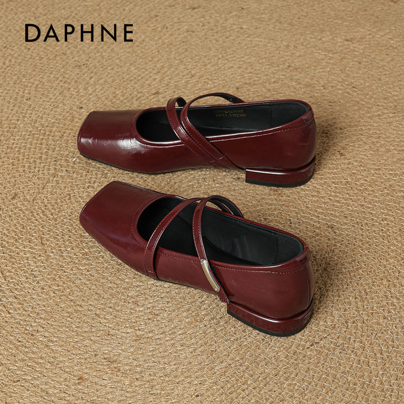 女2025新款 配裙子婚鞋 秋季 小皮鞋 平底单鞋 达芙妮红色芭蕾玛丽珍鞋