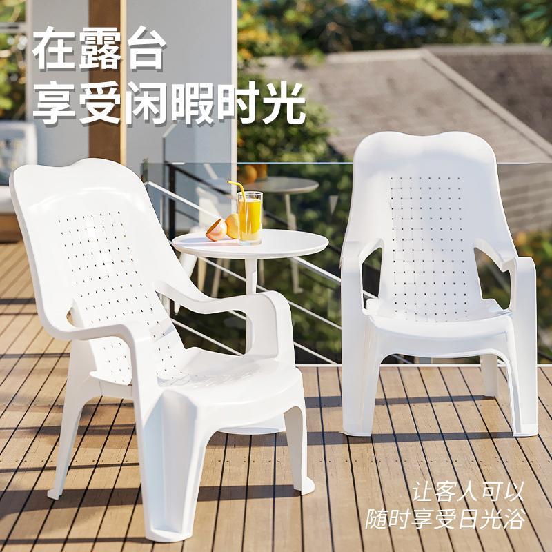 塑料家用加厚靠背椅晒太阳沙滩椅塑胶扶手椅大排档休闲躺椅熟胶椅