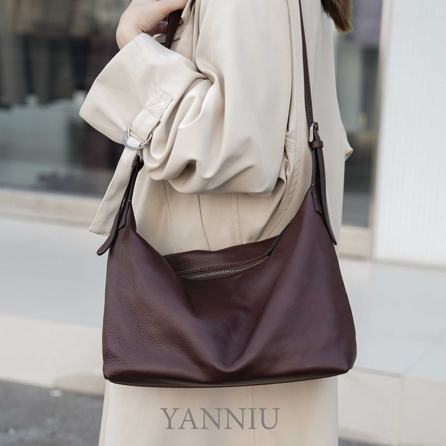 岩牛水染树膏皮经典 hobo包百搭休闲小众单肩简约高级感腋下女包