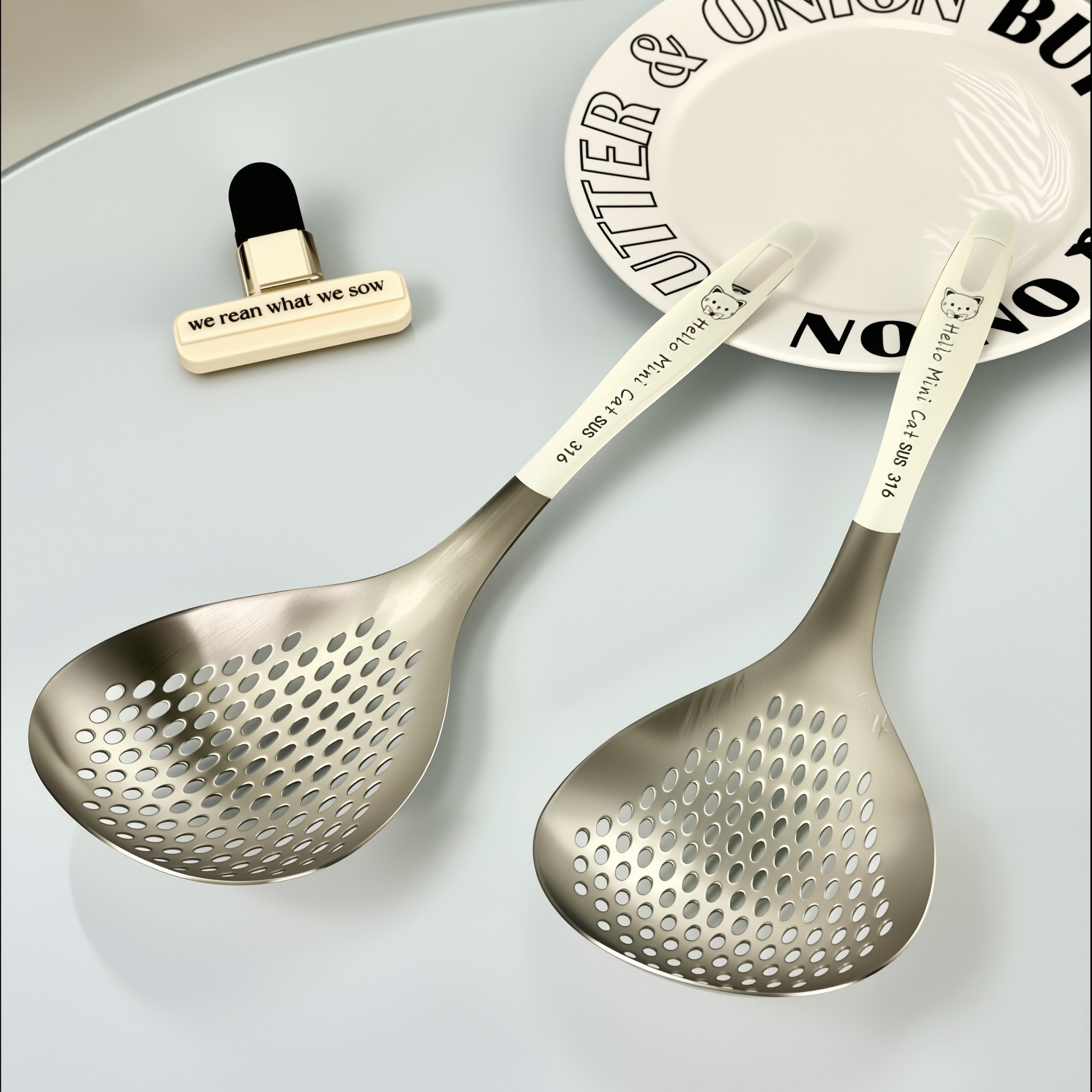 瓦尚旺316食品级不锈钢厨房漏勺家用一体成型捞勺奶油白油炸滤勺