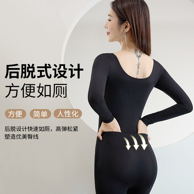 体雕连体塑身衣带胸垫后脱强效收腹提臀束腰美体衣 长裤 加强版 长袖