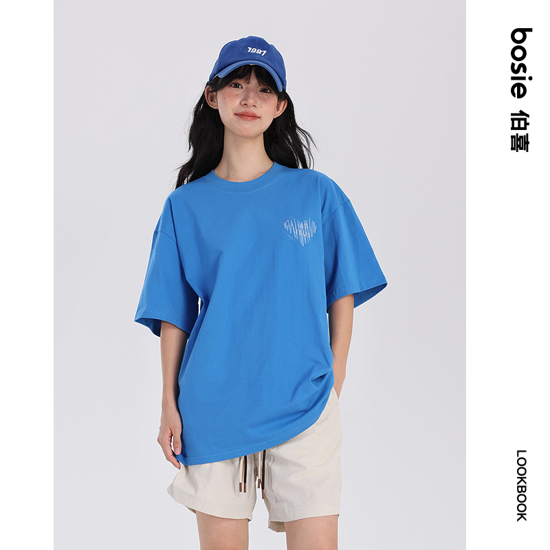 T恤男情侣基础多色美式 宽松短袖 高街体恤 新款 bosie伯喜2025年夏季