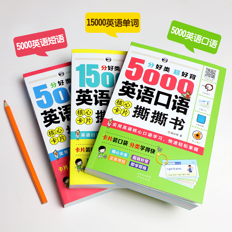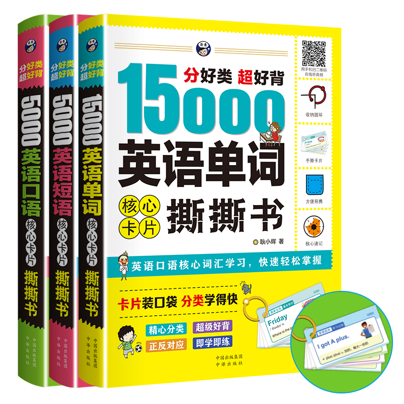 3册套装 5000短语 5000口语 英语核心卡片撕撕书:15000单词