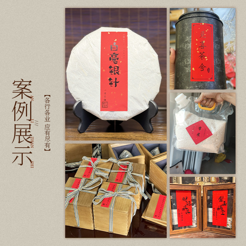 红底洒金不干胶贴纸定制酒水标签茶叶贴纸檀木线香熏包装 贴纸定做