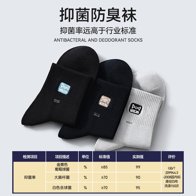 纯棉防臭中筒袜2025年秋季 100%正品 运动吸汗长袜 袜子男款 猫人男士
