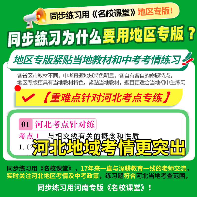 初中七上同步练习册提优训练真题 九年级上册下册语文数学英语物理化学历史地理人教冀教北师版 河北专版 2025秋名校课堂七年级八
