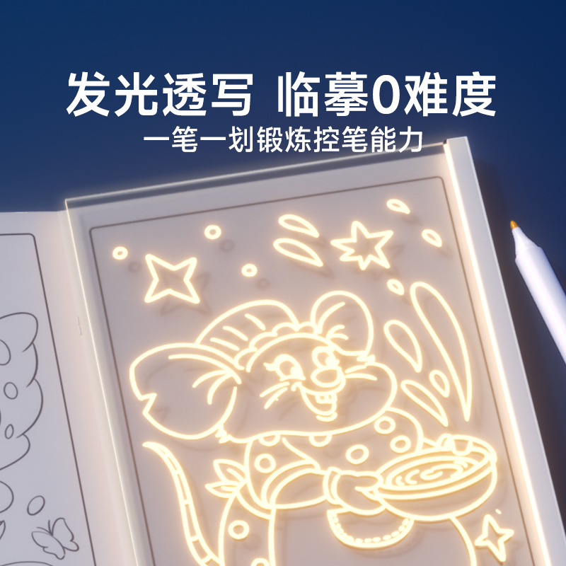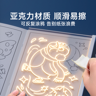 液晶涂鸦画画可擦写字板绘画 儿童发光临摹画板透明会发光 时光学