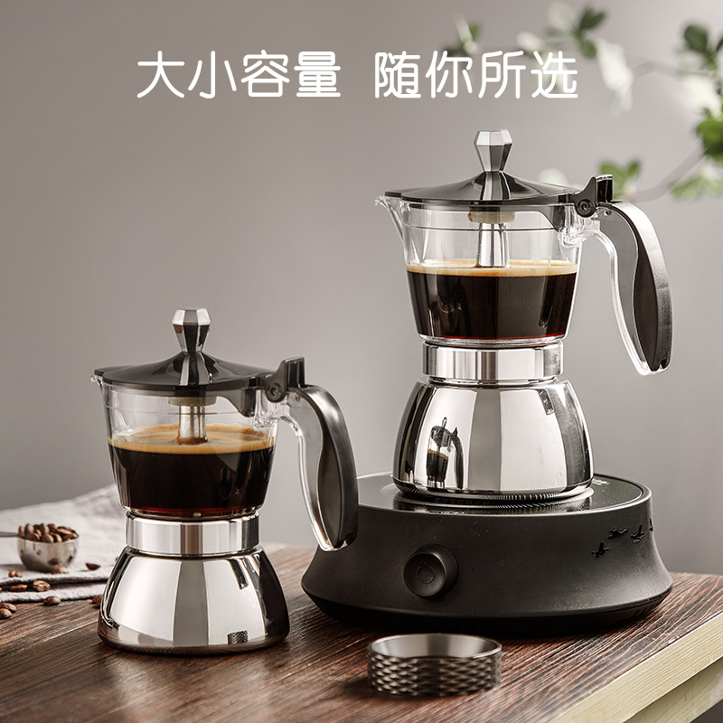 良鼠不锈钢摩卡壶咖啡壶家用意式 透明上壶 浓缩滴滤壶咖啡器具套装