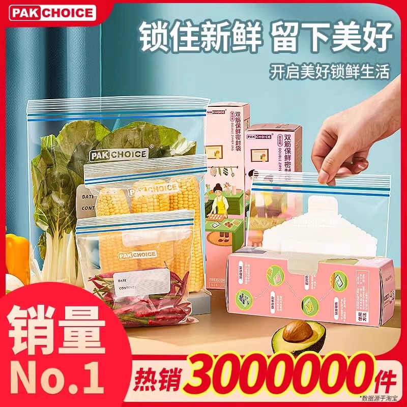 炊大皇保鲜袋食品级家用密封袋子冰箱专用带封口塑自封袋厨房分装