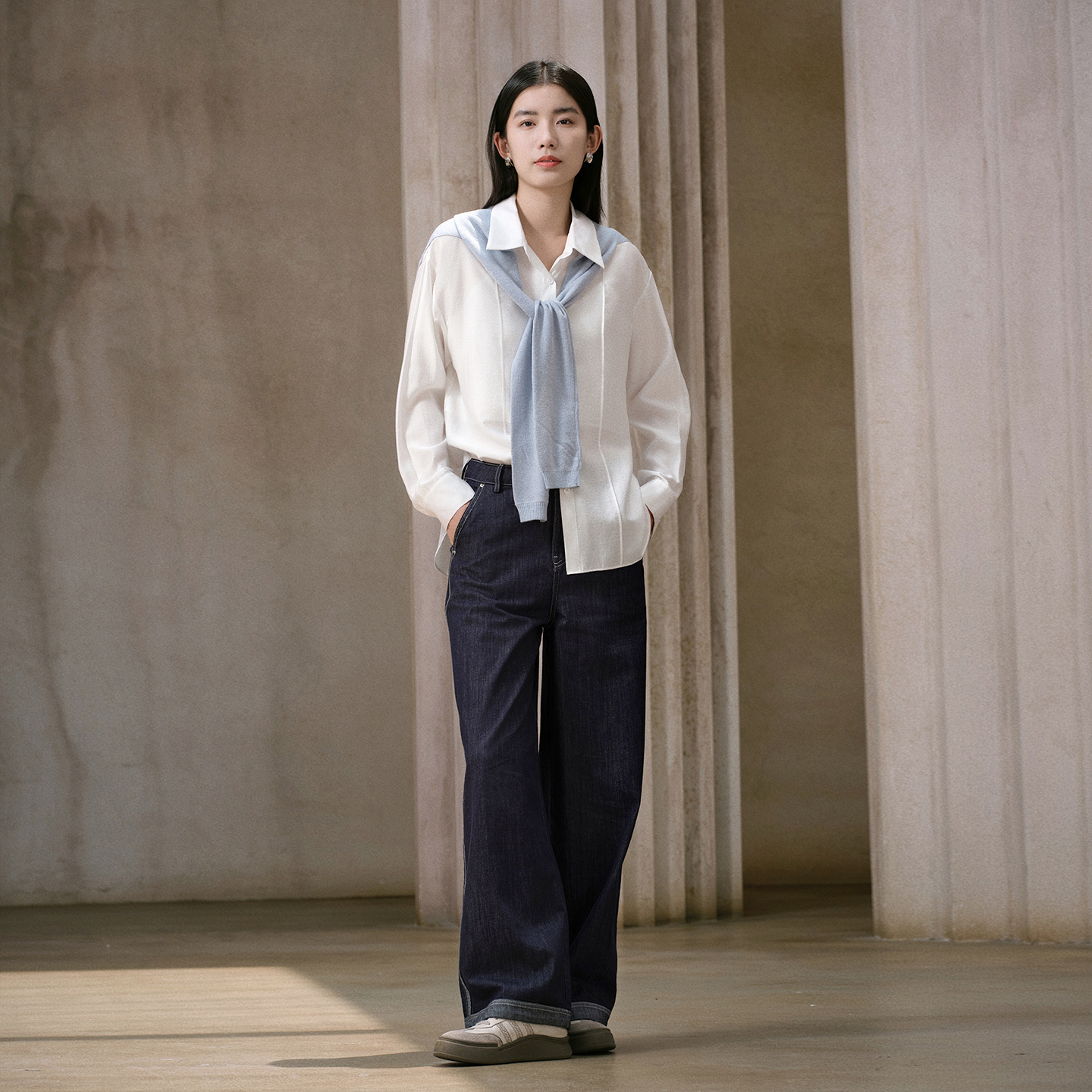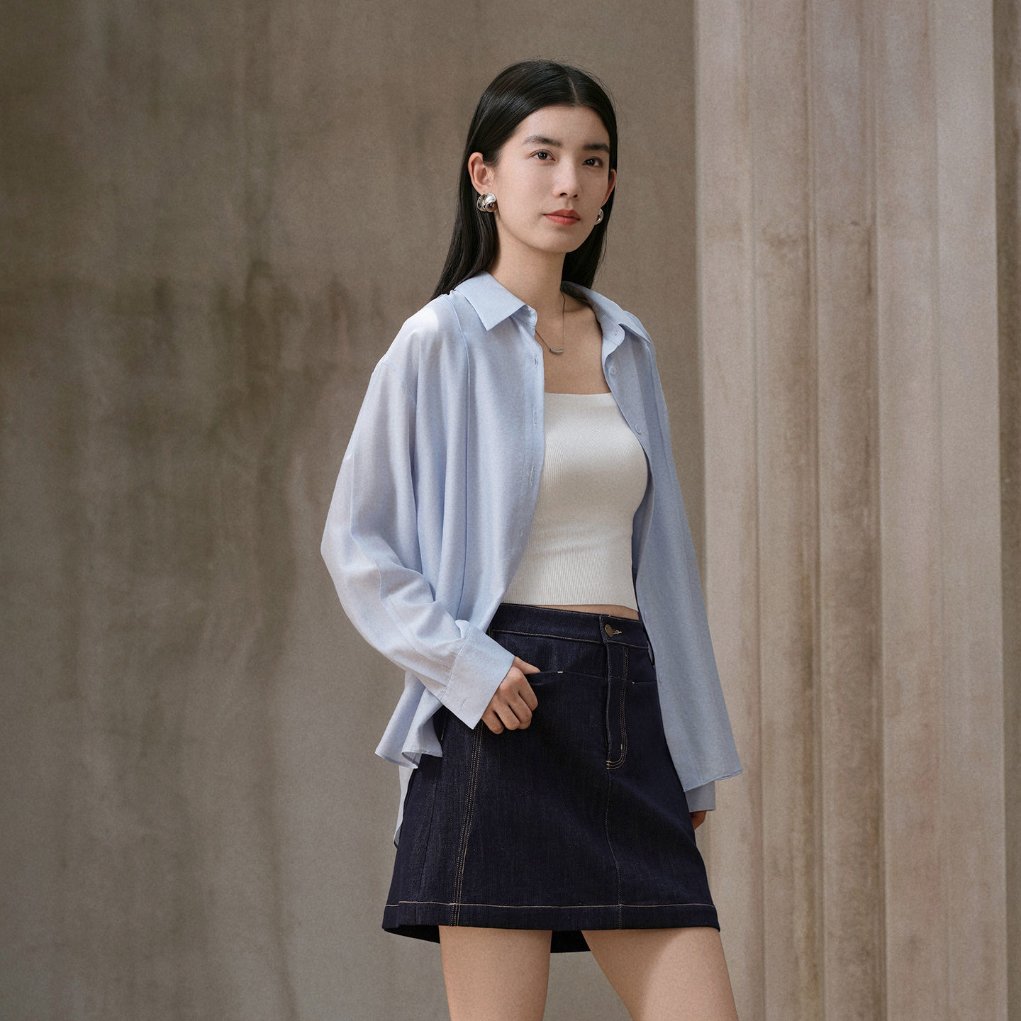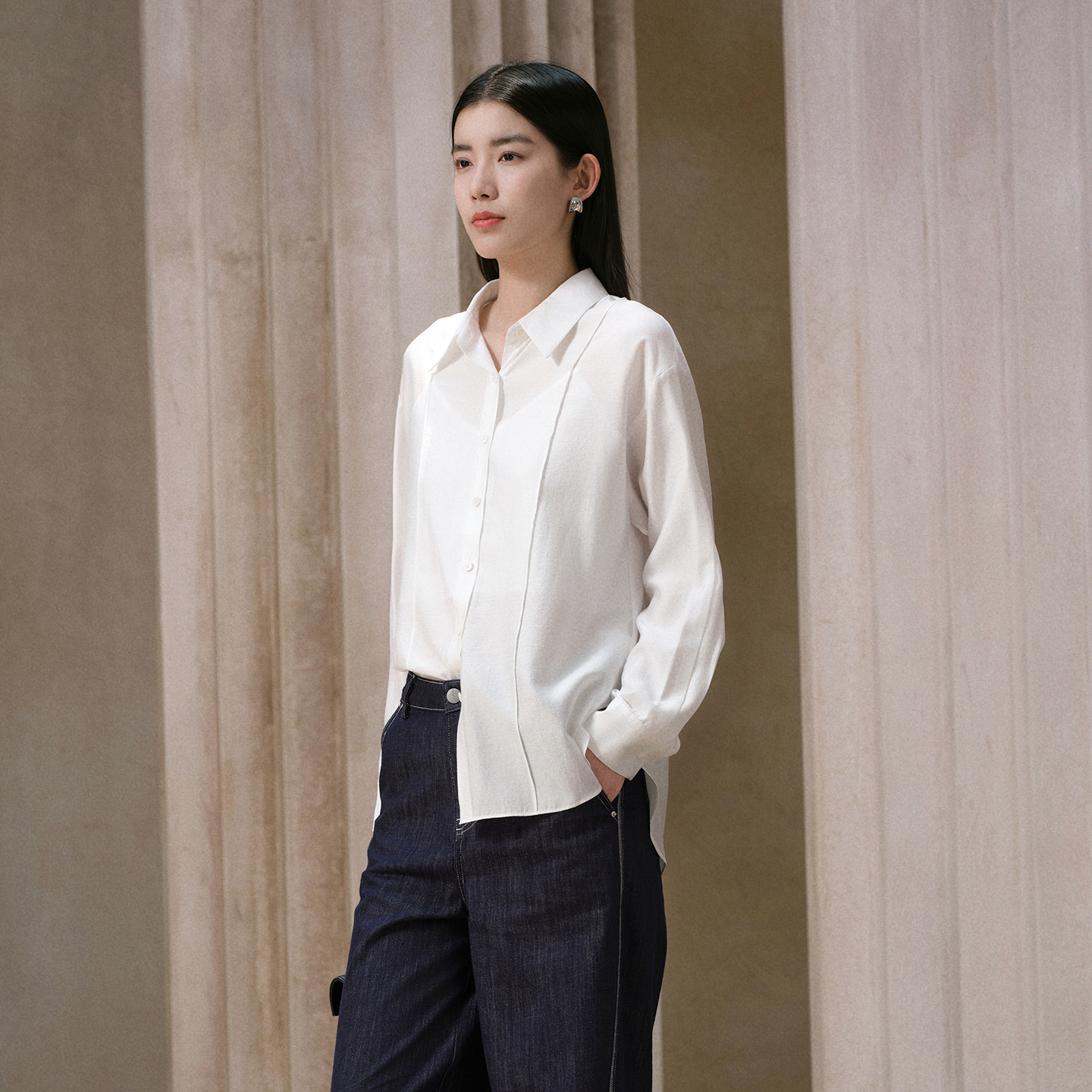 新款 女25秋季 阿依莲假两件衬衫 休闲独特别致宽松上衣 商场同款