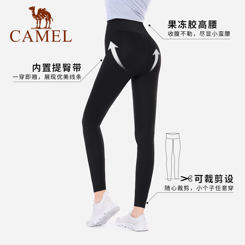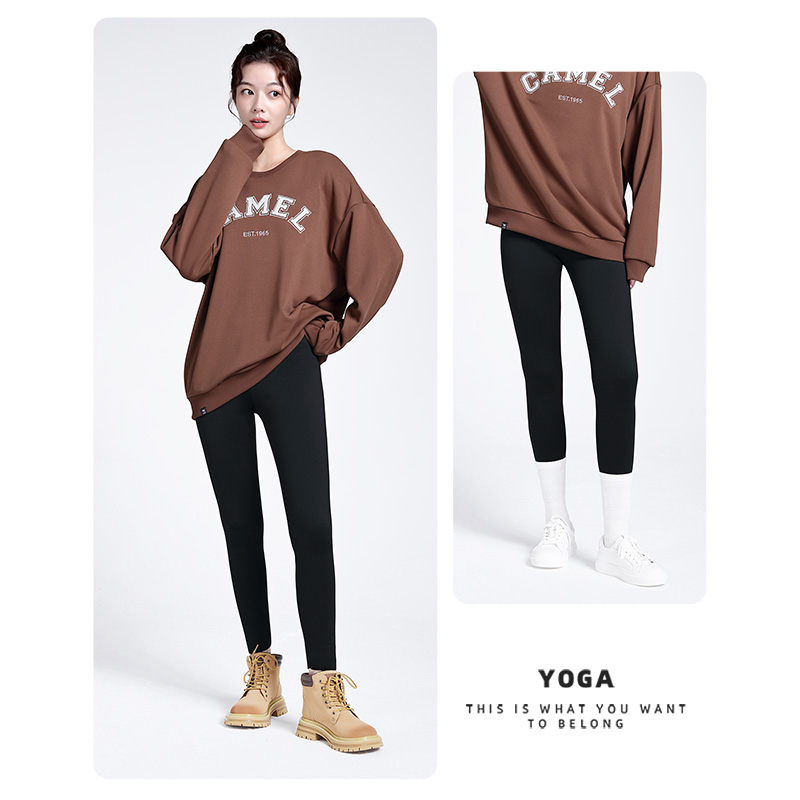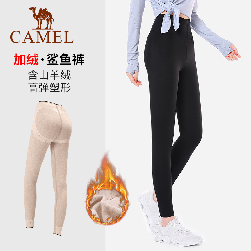 女外穿冬季 跑步健身裤 瑜伽裤 女新款 加绒收腰羊绒打底裤 骆驼鲨鱼裤
