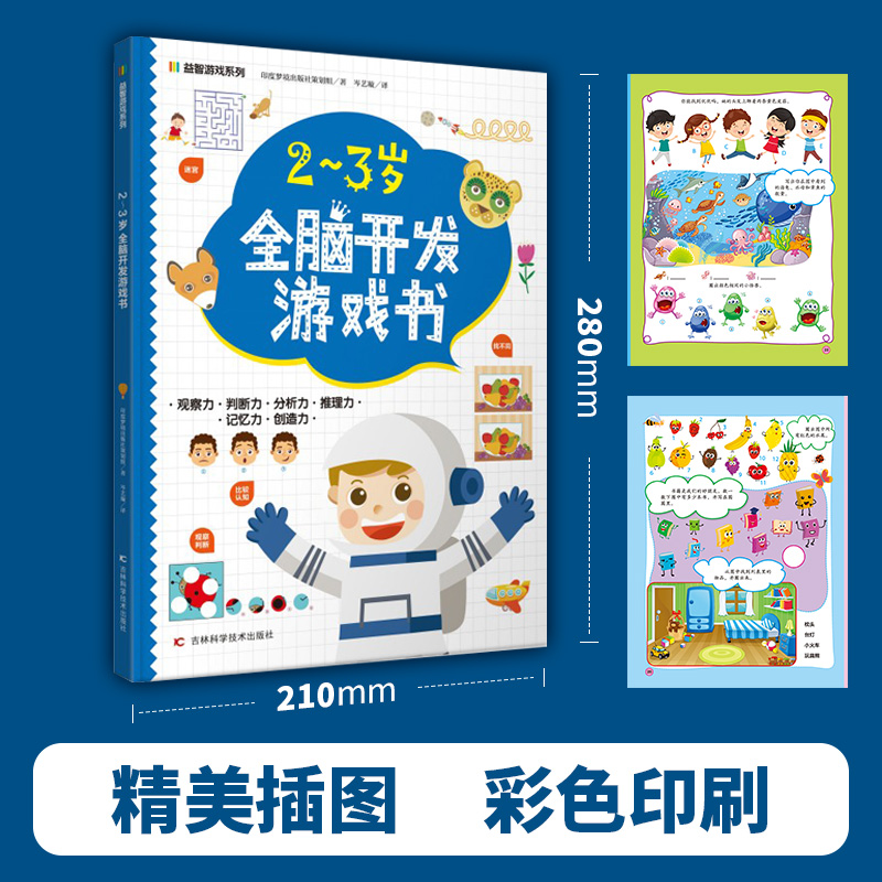 着重提高孩子 3岁全脑开发游戏书 涂色 益智游戏系列2 观察力 想象力 配对 分析力 迷宫 培 找不同 判断力 连点绘画等