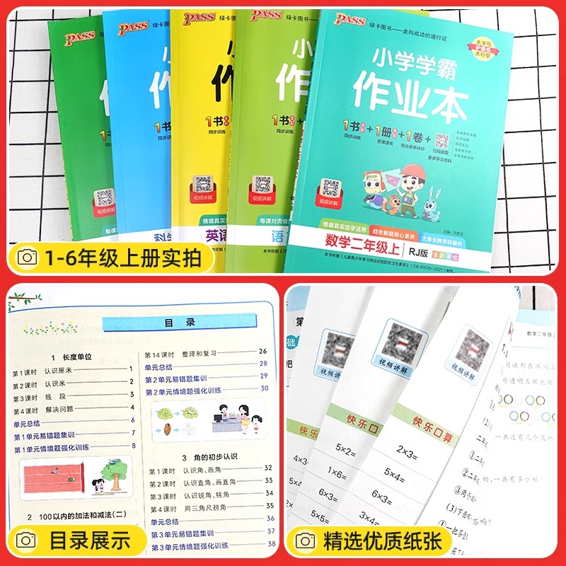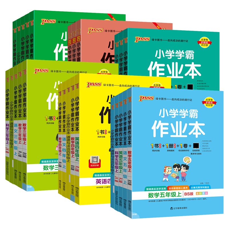 2024秋pass绿卡小学学霸作业本一年级二年级三四五六年级上册语文数学英语科学道德与法治人教版 新教材同步练习册提优训练课时作业