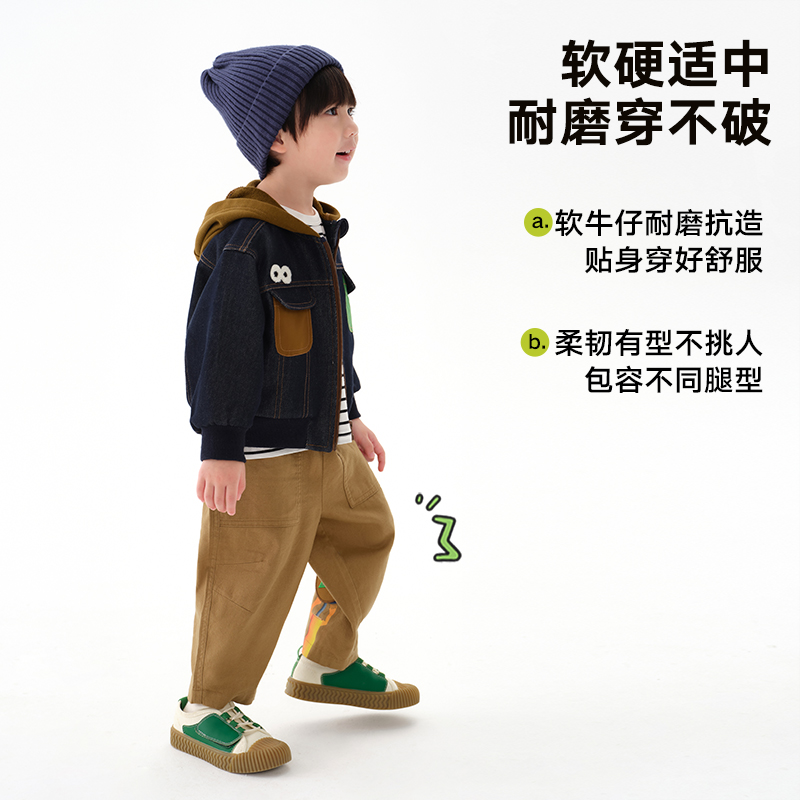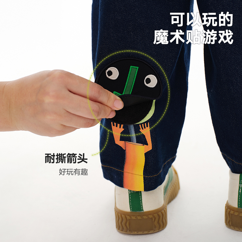 饰牛仔长裤 马拉丁童装 男小童可拆卸魔术贴绣标装 子24秋新款 儿童裤