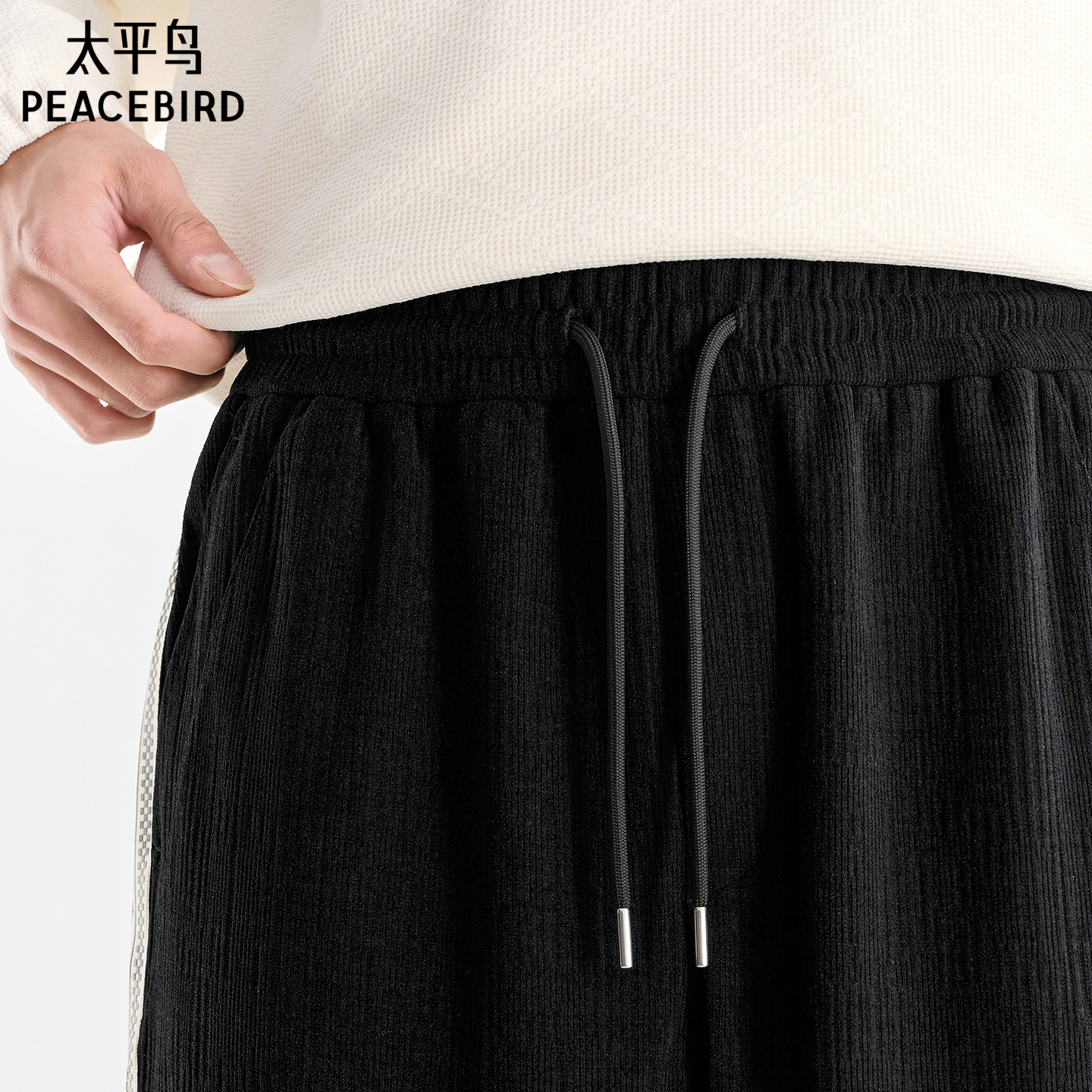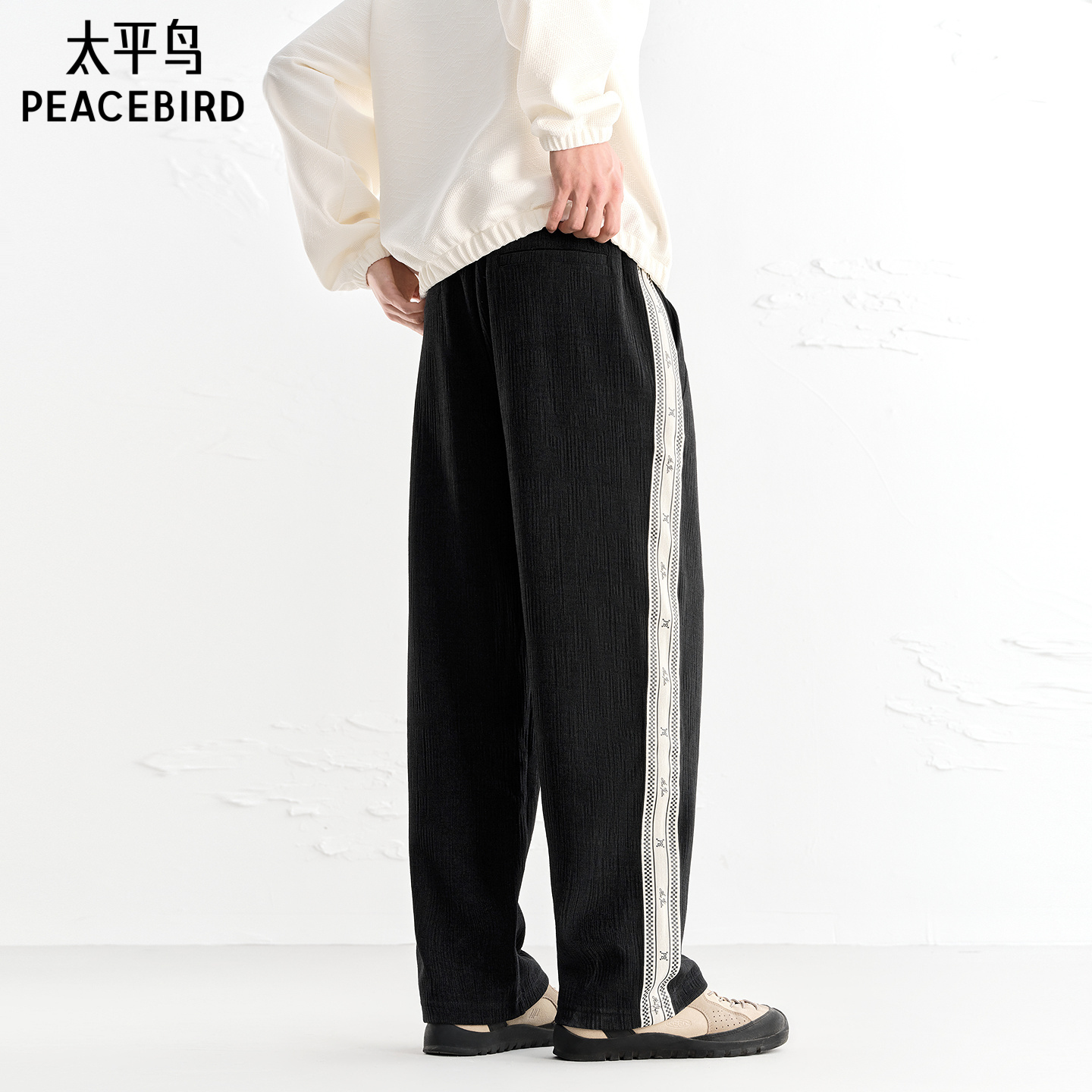 潮黑色直筒运动长裤 太平鸟男装 侧边撞色织带运动卫裤 秋季 休闲裤