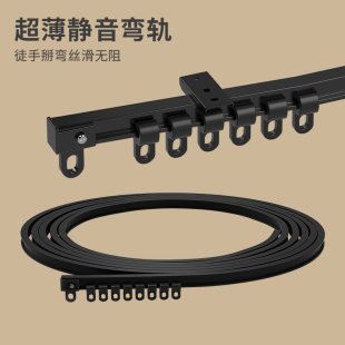 超薄免打孔窗帘轨道弯轨飘窗纳米静音单轨滑轨L型U型导轨可弯曲轨