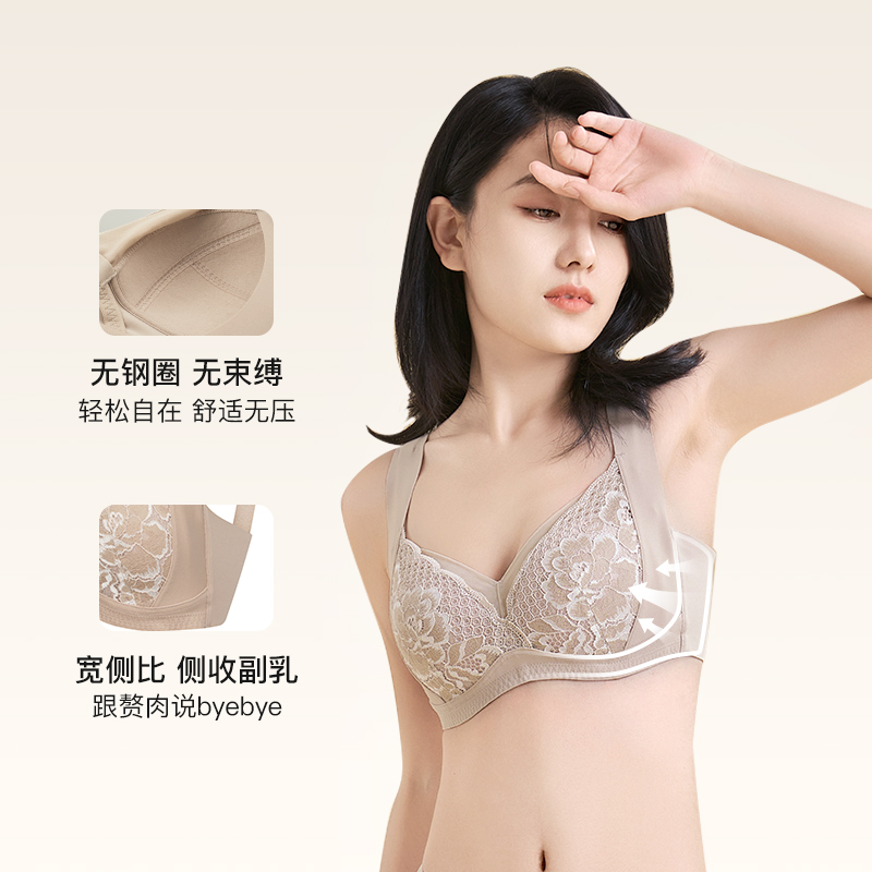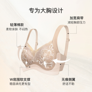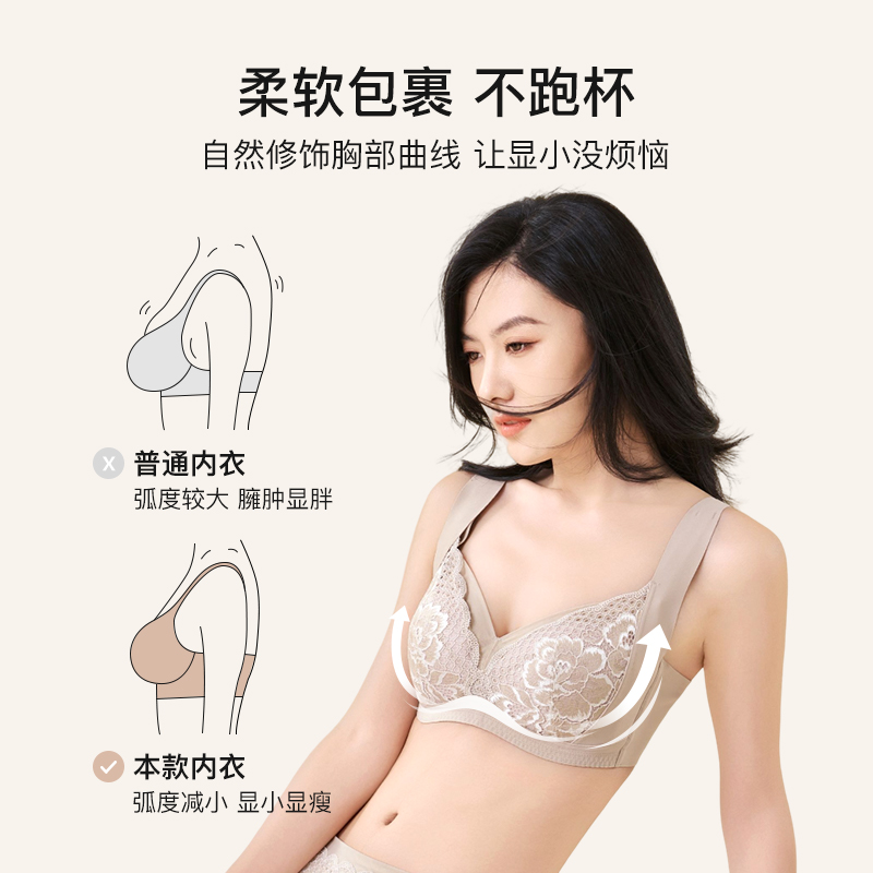 古今大胸显小内衣女透气舒适性感蕾丝全包裹承托防外扩文胸罩