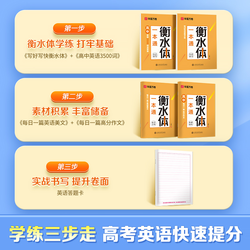华夏万卷衡水体一本通于佩安高中衡水体英语字帖高考满分作文3500词汇初高中硬笔练字帖书写教程手写印刷体初中练字临摹书法练字本