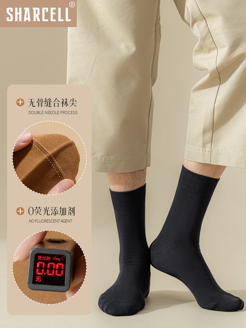 咖色长袜 男士 袜子男纯棉春秋季 中筒袜防臭吸汗抗菌无骨商务配皮鞋